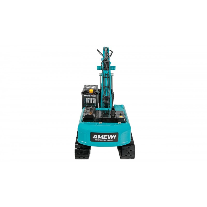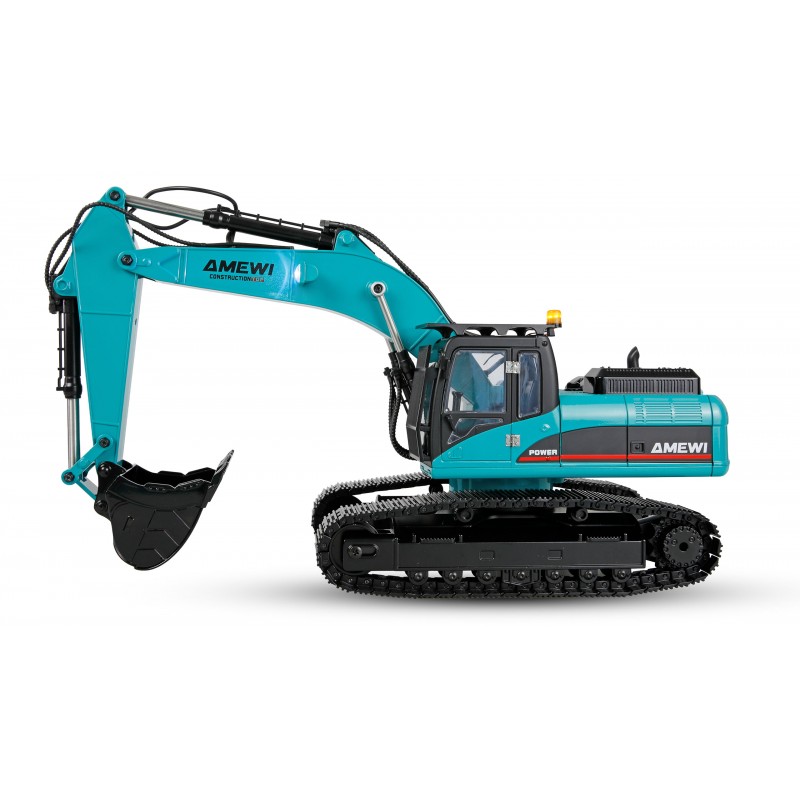 Il telecomando di alta qualità a 14 canali consente un controllo proporzionale di tutti i movimenti, compresi i cingoli, consentendo di manovrare l'escavatore in modo sensibile e preciso. Il sistema a 2,4 GHz privo di interferenze garantisce una trasmissione affidabile del segnale. Il modello è fornito come set RTR (Ready-to-Run) – inclusi telecomando, batteria e caricabatterie – ed è configurato e abbinato in fabbrica, in modo da essere immediatamente pronto all'uso.