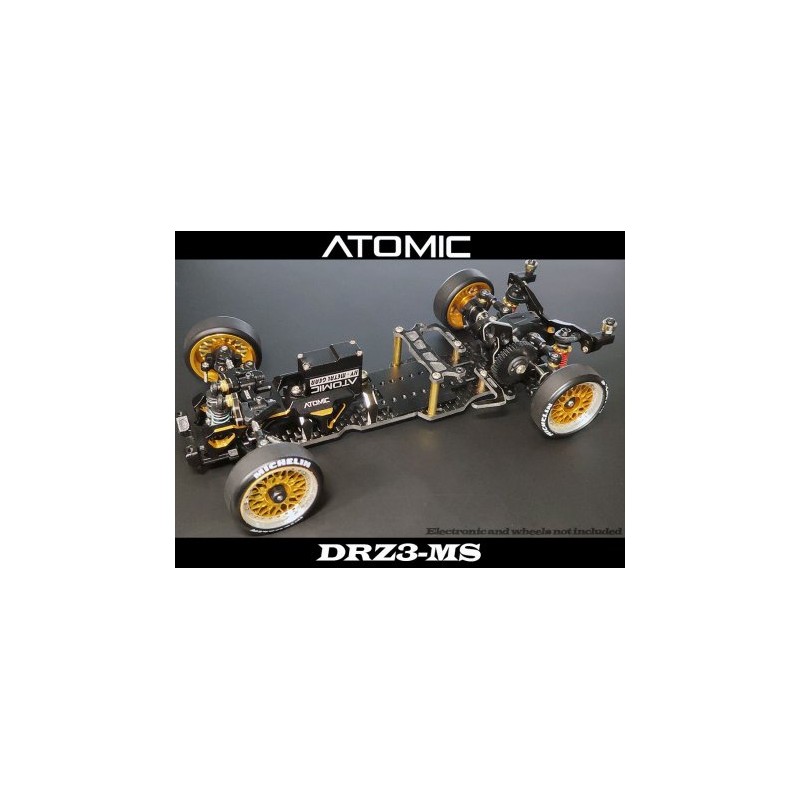 Vi presentiamo il nuovo Atomic DRZ3 MS. Questo telaio professionale da drift presenta varie nuove caratteristiche e design: - Ammortizzatore anteriore posizionato al centro del telaio anteriore, permette più spazio per la ruota. Pertanto, l'angolo massimo di sterzata è notevolmente aumentato. - Compatibilità con cerchi 1:24 e 1:28 - Regolazione del passo da 90 a 120 mm. - Montaggio magnetico del corpo - La posizione del motore è regolabile. - La paratia posteriore può essere installata in retromarcia, per permettere il motore in posizione posteriore. (RR Rear Motor – configurazione Rear Drive) - Design No-Top-Deck, più facile da installare elettronica e appare più ordinato. - Posizione, larghezza, lunghezza e altezza del supporto della batteria regolabili - Nuovo design di ammortizzatori a attrito estremamente basso - Regolazione rapida dell'angolo del rodeatore (da 0 a 16 gradi) - L'Ackerman dello sterzo può essere facilmente regolato cambiando la posizione del servo e della manovella dello sterzo. - È incluso il differenziale a sfera in alluminio. - Paratia posteriore in alluminio - Paratia anteriore in alluminio - Supporto motore in alluminio. - Motore di sterzo a azionamento diretto in alluminio Si prega di notare che la manovella dello sterzo è compatibile solo con servo spline, che ha un diametro da 3,5 a 3,9 mm.
