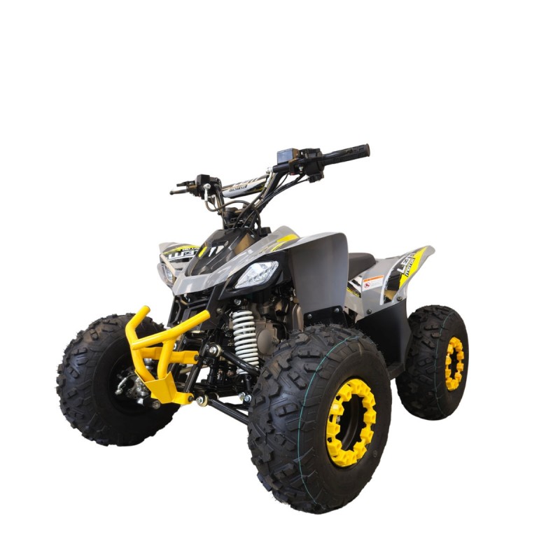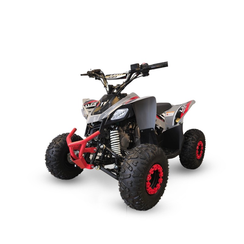 Il nostro quad è alimentato da un motore 4 tempi monocilindrico da 110cc, con carburatore e capacità del serbatoio di 3,5 litri per benzina verde. Offre un'avviamento elettrico per facilità d'uso e un cambio automatico che rende la guida intuitiva. Le dimensioni compatte della moto, con 135 cm di lunghezza, 70 cm di larghezza e un'altezza sella di 73 cm, la rendono maneggevole e versatile. Pesando mediamente 75 kg e con cerchi in alluminio e pneumatici da 76'', il quad è progettato per offrire stabilità e prestazioni ottimali su terreni vari. È equipaggiato con freni a disco sia anteriore che posteriore per garantire una frenata sicura in ogni situazione. Gli accessori di tuning inclusi, come lo scarico sportivo, il regolatore di velocità, il dispositivo di spegnimento del miniquad in caso di caduta, la frizione con molle rinforzate, il telaio completamente rinforzato, il filtro aria sportivo racing, il blocchetto start con doppia chiave, le ruote tacchettate e le sospensioni rinforzate, migliorano le prestazioni e l'esperienza di guida. Questo quad è progettato per l'uso su spazi privati o piste dedicate, non essendo omologato per la circolazione su strada.