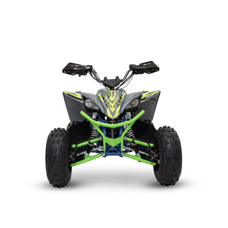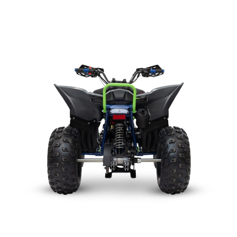 Le dimensioni del prodotto sono 1400x880x700 mm, con paracolpi anteriore, scarico racing cromato maggiorato, braccetti con ingrassatori, pedane antiscivolo e ruote anteriori da 18/7-8" e posteriori da 18/9-8". La trasmissione è a catena, mentre la sella è dotata di sistema antiscivolo su un telaio maggiorato rinforzato, ideale per affrontare sfide sportive e avventure fuoristrada.