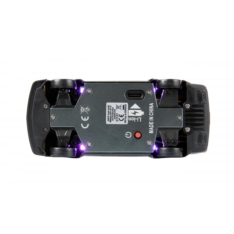 Il modello raggiunge velocità fino a 15 km/h e offre tempi di guida di circa 20 minuti grazie alla batteria LiPo integrata. Un avviso di sottotensione protegge in modo affidabile la batteria da una scarica completa. La batteria può essere ricaricata in circa 30 minuti tramite la presa di ricarica USB-C integrata. È incluso un cavo di ricarica USB abbinato.