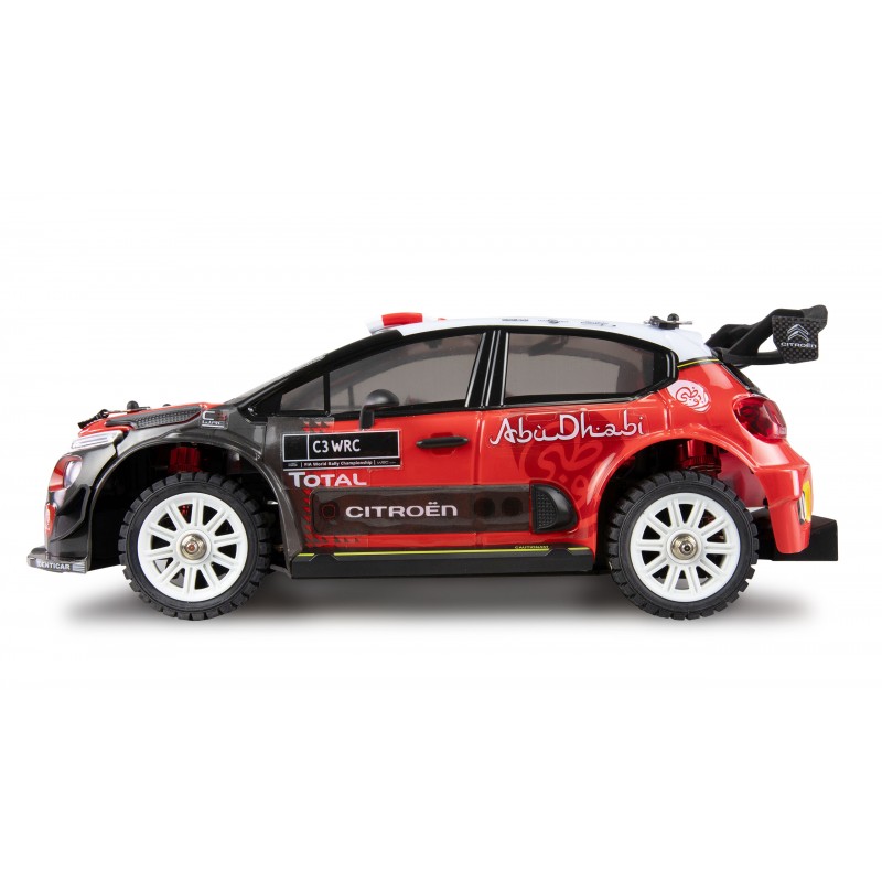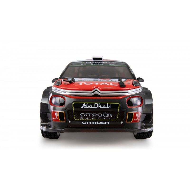 Altre caratteristiche: versione RTR (Ready-to-Run) inclusi telecomando, batteria, caricatore Carrozzeria Citröen C3 WRC Abu Dhabi con licenza con molti dettagli come le parti originali di trasmissione a cuscinetti a sfera per prestazioni di guida fluide e durature fari e luci posteriori a LED e luci posteriori per la guida al crepuscolo Copertura sporco per il telaio per tenere sporco e polvere lontani dai componenti il più possibile Ammortizzatori regolabili per pressione dell'olio in alluminio Componenti individuali composti da ESC, servo, giroscopio e servo per facilità di riparazione e buona accessibilità dei componenti Tutte le parti in plastica in plastica composita per la massima durata