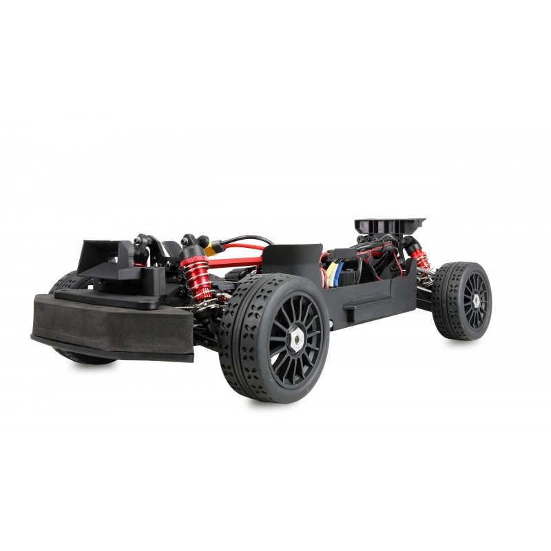 L'Hyper Go VW Polo WRC Rallye è fornito come set RTR, che include telecomando, batteria LiPo 4S da 5000mAh, caricatore USB e due set di pneumatici per uso su strada e rally. Il vano batteria regolabile permette l'uso di diverse dimensioni, mentre la scatola del ricevitore impermeabile protegge l'elettronica dall'umidità. Ammortizzatori in alluminio a pressione olio, componenti completamente a cuscinetti a sfera e alberi di trasmissione CVD garantiscono un'eccellente maneggevolezza e durata. Un servo di sterzo a ingranaggi metallici da 35 kg e il telecomando a 2,4 GHz con doppia velocità e retromarcia per gas e sterzato permettono un controllo preciso in qualsiasi situazione di guida. L'Hyper Go VW Polo WRC Rallye combina alta stabilità, prestazioni e dettaglio in un modello di alta qualità progettato per una guida rally impegnativa su una varietà di superfici.
