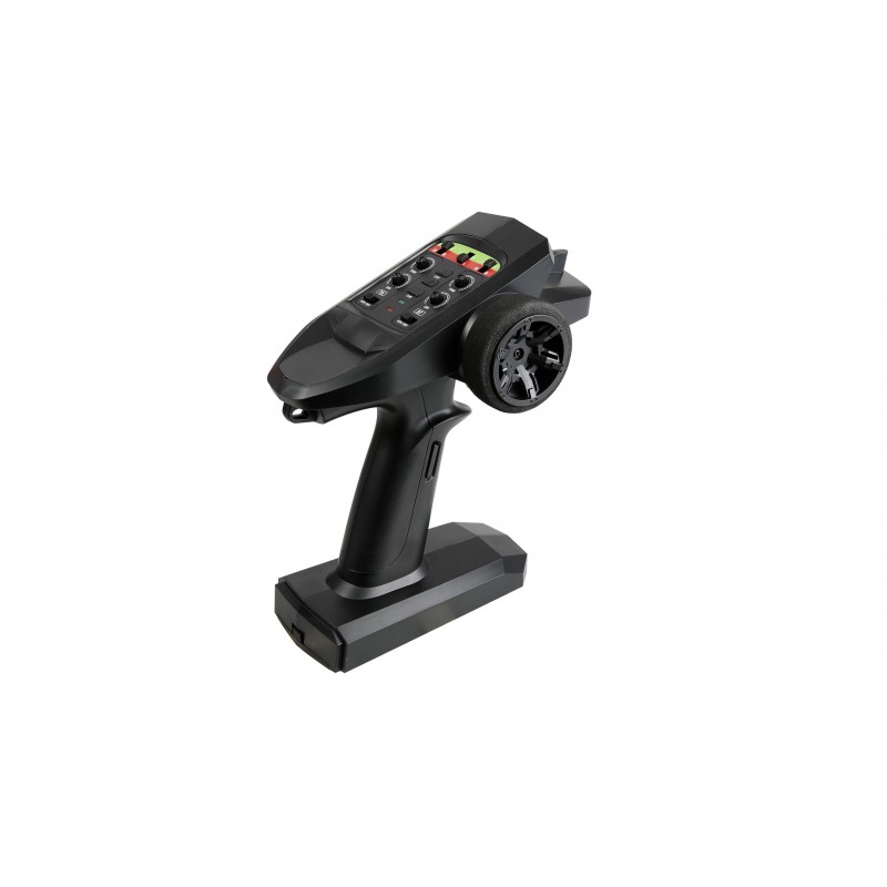 Il set RTR (Ready-to-Run) include telecomando, batteria e caricabatterie ed è pronto per l'uso immediato. La carrozzeria del modello con licenza Ford Bronco R Baja 1000 è realizzata in plastica ABS resistente ed è dotata di una robusta gabbia in plastica e di una pratica chiusura magnetica. Una scatola ricevitore impermeabile protegge in modo affidabile l'elettronica dall'umidità. Ammortizzatori regolabili in alluminio a pressione dell'olio garantiscono uno smorzamento ottimale. Il telecomando a 8 canali a 2,4GHz e senza interferenze offre anche la possibilità di regolare finemente sterzo e acceleratore tramite Dual Rate, oltre a limitare la velocità massima.